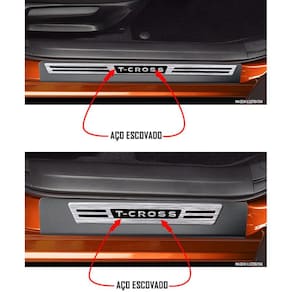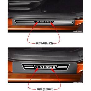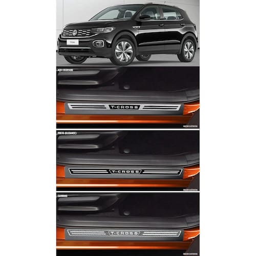 Jogo Soleira Premium Elegance Vw T-Cross 2019 2020 - 4 Portas ( Vinil + Resinada 8 Peças ) - Cor: Vinil + Carbono