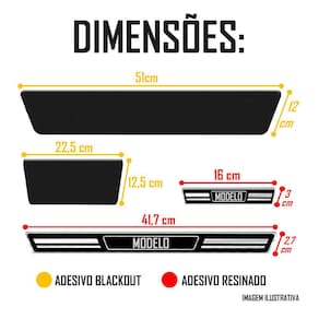OBS.: A LARGURA da soleira Blackout (Vinil Preto) VARIA de acordo com o veículo para garantir a proteção da pintura.