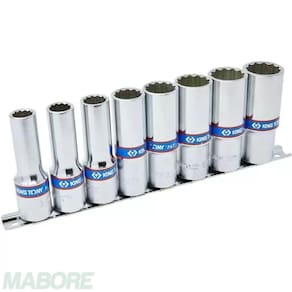 O jogo de soquete estriado de 1/2 polegada, de 12 a 23mm, ref.: 4208MRC10 da Kingtony é fabricado em aço cromo vanádio para garantir a qualidade do produto. Alta durabilidade e resistência. Acabamento cromado e polido.