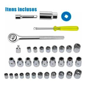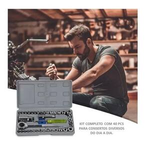 Jogo de Soquete Kit 40 Peças Chave Catraca Reversível Ferramenta + Maleta Sextavado Pito Vela Canhão Torque O Jogo de chaves mais soquetes sextavados em aço carbono LUATEK é indicado para trabalhos de aperto e desaperto de porcas e parafusos sextavados. Com 40 peças no total o jogo é composto de soquetes com medidas em Milímetros e Polegadas. Além dos soquetes, compõem o jogo: extensor de 3, chave catraca 3/8, chave direcional de 21mm, disco de reversão 6, 1 adaptador, 1 chave de manopla e estojo organizador. O que é o Disco Azul que acompanha o KIT Essa peça azul chama-se DISCO DE REVERSÃO. Ela tem a função de auxiliar o operador na mudança de posição apertar/afrouxar da catraca. Modo de utilizar: 1 - Coloque o disco no pino quadrado. 2 - Com uma das mãos segura o disco azul com o dedo indicador e polegar. 3 - Com a outra mão gire a peça preta que fica na parte traseira da catraca. -------------------- Especificações Técnicas: MATERIAL Aço carbono e PE -------------------- ITENS INCLUSOS 14 Soquetes 1/4' : 5/32 , 3/16 , 7/32 , 1/4 , 9/32 5/16 , 11/32 , 3/8 , 13/32 , 7/16 15/32 , 1/2 , 17/32 , 9/16 14 Soquetes 1/4' : 4 / 4.5 / 5 / 5.5 / 6 / 6.5 / 7 / 7.5 /8 / 9 / 10 / 11 / 12 / 13 mm 3 Soquetes 1/4' : 1/4 , 5/16 , 3/8 2 Soquetes 3/8' : 14 / 15mm 2 Soquetes 3/8' : 5/8 , 11/16 1 Extensor 3/8' : 3' 1 Adaptador : 1/4' - 3/8 1 Chave Catraca : 3/8' 1 Estojo organizador 1 Disco de reversão Marca: Não Informado