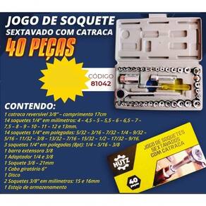 - Jogo Soquete Sextavado Com Catraca 40 Peças - Hutz