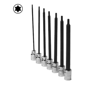 - chave soquete torx estrela longa - soquete zincado/cromado e ponta fosfatizado/escurecida. - indicado para parafusos com estrela torx interna. - para trabalhar com acessórios manuais. - modelo longo. - encaixe quadrado de 3/8 polegada - tamanho total da chave: 15,5 cm - tamanho do torx: t10, t15, t20, t25, t27, t30 e t40. - marca: prosetga Marca: Prosetga Ean: 4034229104771