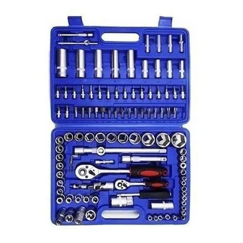 Jogo de soquetes e ponteiras com encaixe de 1/4 e de 1/2 com catraca 108 peças