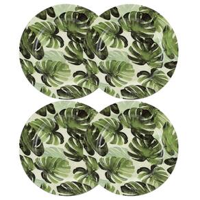 Transforme suas refeições em um espetáculo de sofisticação com o nosso Jogo de Sousplat decorativo, apresentando a deslumbrante estampa de folhagens costela de adão em tons verdes. Com um diâmetro de 33cm, este conjunto de 4 Sousplat adicionará um toque de natureza e elegância à sua mesa.