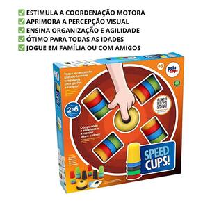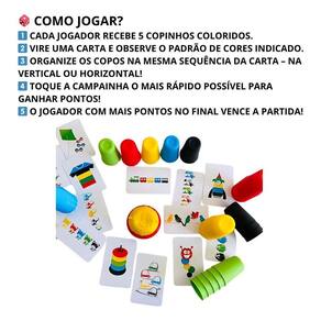 Seja o primeiro a empilhar os copos coloridos na sequência correta e apertar a campainha Esta versão é projetada para 2 a 6 jogadores, proporcionando diversão para toda a família. O jogo onde a esperteza e a rapidez ditam o ritmo