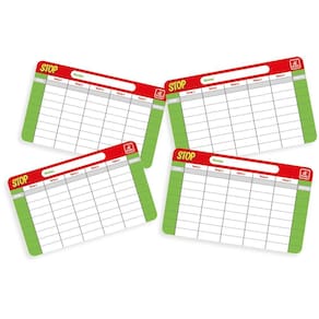 Contém: 4 cartelas escreva e apague; 4 canetas com apagador; 1 roleta.