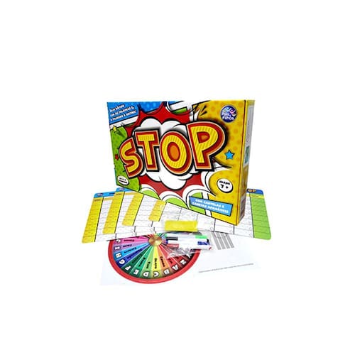 Cada jogador pega uma cartela e preenche o seu nome. Primeiro, deve-se girar a roleta e definir os 5 temas da partida, escrevendo na ordem sorteada em todas as cartelas . Girada a roleta é definida a letra, cada jogador deve colocar a letra no campo correspondente na sua cartela e imediatamente escrever as palavras com a letra anotada nas colunas com os temas pré-definidos no início. Os participantes devem tentar preencher as 5 palavras correspondentes aos temas. - O primeiro que completar as palavras deve dizer em voz alta: STOP. - Assim, os jogadores devem parar de escrever na mesma hora. - Então, cada jogador lê em voz alta sua palavra do tema 1. - Se sua palavra for única, o jogador anota 10 pontos. - Se mais alguém escreveu, cada jogador anota 5 pontos. - Se a coluna não foi preenchida por algum motivo, anota-se 0 (zero) ponto e assim verifica todos os cinco temas. - Encerrada rodada, o próximo participante gira a roleta e e define a próxima letra e repete-se a jogada. - Vence aquele que, no final da cartela, tiver mais pontos. Acompanha 1 roleta, 4 cartelas cartonadas, 4 canetas dry eraser e 4 apagadores.