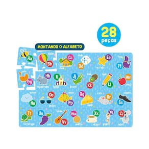 Inclui: 1 quebra-cabeça de 26 peças, 12 pares de jogo de memória e 28 peças de dominó.