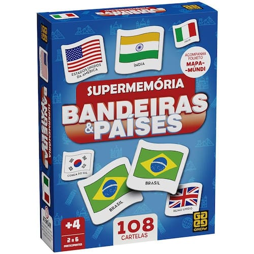 Com imagens de bandeiras e países de diversas partes do mundo, o jogo também desperta a curiosidade e amplia o conhecimento de geografia de forma leve e envolvente.