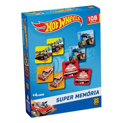 O Jogo Grow é perfeito para crianças apaixonadas por carros e fãs da famosa marca Hot Wheels. Composto por 108 cartelas e um manual de instruções, este divertido jogo de memória irá desafiar a concentração, percepção visual e habilidades de memorização dos pequenos.