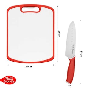 Já a tábua de corte, resistente e higiênica, protege suas superfícies e facilita o manuseio dos alimentos.