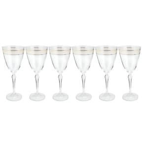 Jogo Taças Água Suco 350Ml 6 Pçs Grace Cristal Friso Dourado
