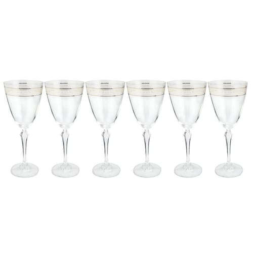 Linha: Angela Tipo: Taça de Champanhe Material: Cristal Capacidade: 350ml Acabamento: Friso dourado Cor: Transparente com detalhe dourado Quantidade: 6 taças