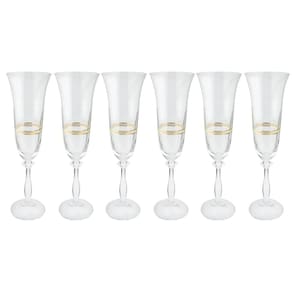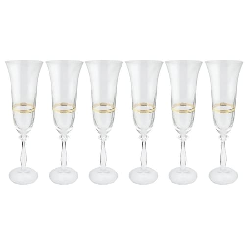 Destaques do Produto: Cristal de alta qualidade: Brilho, transparência e resistência em cada peça. Friso dourado refinado: Toque de luxo que valoriza sua composição de mesa. Capacidade de 190ml: Ideal para champanhes, espumantes e coquetéis. Design ergonômico e elegante: Confortável de segurar e com visual impecável. Conjunto com 6 taças: Perfeito para recepções, eventos ou momentos íntimos. Transforme celebrações em experiências memoráveis com esse conjunto que une tradição, estilo e qualidade. Marca: Não Informado