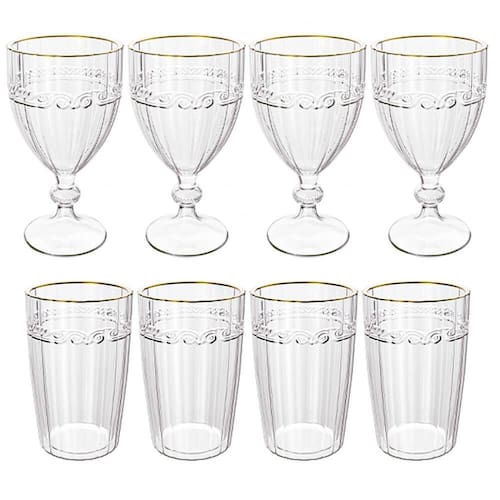 Conjunto De 4 Taças e Copos Imperial Transparente Fio de Ouro - Lyor