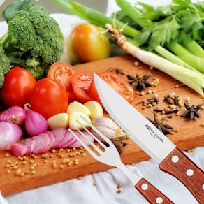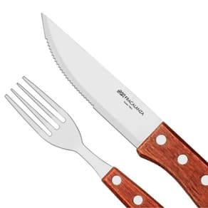 Jogo Talheres para Churrasco em Aço Inox Cabo Madeira 12pç Dynasty