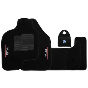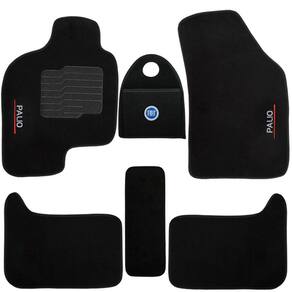 Jogo Tapete Automotivo Carpete + Lixeira Fiat Palio 1996 à 2007 Soft Logo Bordado Preto 6 Peças