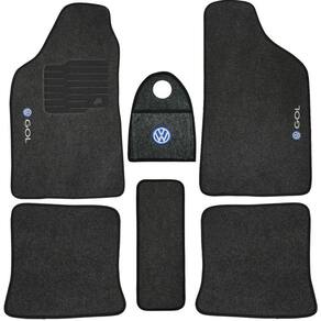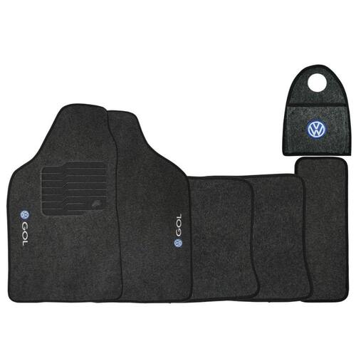 Jogo Tapete Automotivo Carpete + Lixeira Gol Quadrado 1980 à 1994 Soft Logo Bordado Grafite 6 Peças