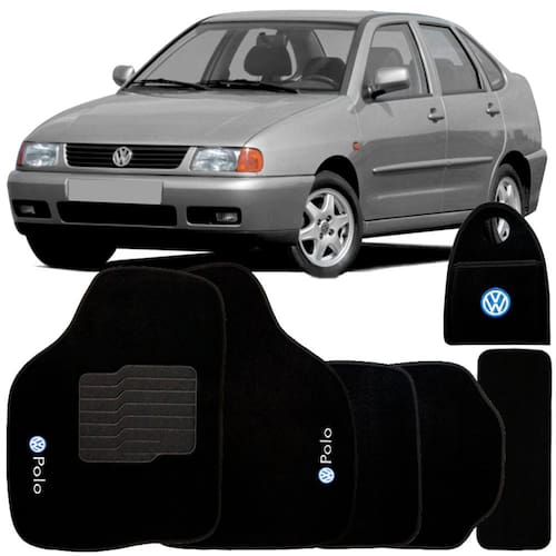 Jogo Tapete Automotivo Carpete + Lixeira Polo Sedan 1997 à 2001 Soft Logo Bordado Preto 6 Peças - Jogo de tapete automotivo com lixeira para Polo Sedan