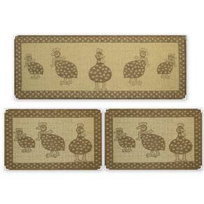Jogo de Tapetes para Cozinha Sisal Antiderrapante KS-75 Cor Mescla Estampa Galinhas Kit com 3 Peças