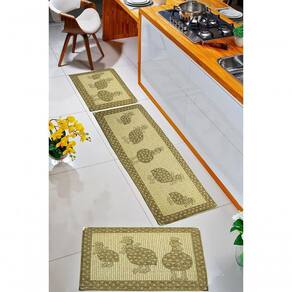 Principais Características:- Kit com 3 Peças Composto por um tapete grande e dois menores para compor sua cozinha de forma funcional e harmoniosa.- Material Resistente Produzido com 87% polipropileno e 13% poliéster, garantindo durabilidade e conforto.- Base Antiderrapante Maior segurança para evitar escorregões e proporcionar firmeza no uso diário.