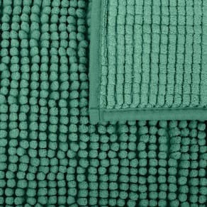 Absorção eficiente: Com uma trama especial, o tapete absorve a água rapidamente, mantendo o chão do banheiro seco e livre de poças, evitando acidentes.
