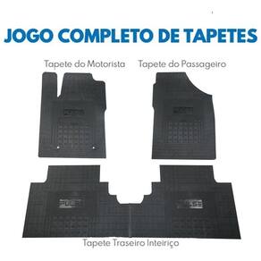 Especificação técnica: Fabricado de borracha injetado flexível Espessura de 3mm a 4mm e bordas de ate 5mm Textura antiderrapante Bordas retentoras de sujeira e mais grossa Material super resistente , não rasga e de grande durabilidade. Personalizado com o nome do carro Baixo odor Cor preta Jogo de 3 peças, sendo 2 peças dianteira e 1 uma única peça traseira Acompanha furação para travar o tapete dianteiro esquerdo motorista