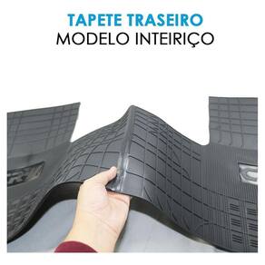 Especificação técnica: Fabricado de borracha injetado flexível Espessura de 3mm a 4mm e bordas de ate 5mm Textura antiderrapante Bordas retentoras de sujeira e mais grossa Material super resistente , não rasga e de grande durabilidade. Personalizado com o nome do carro Baixo odor Cor preta Jogo de 3 peças, sendo 2 peças dianteira e 1 uma única peça traseira Acompanha furação para travar os tapetes dianteiros esquerdo motorista e direito passageiro