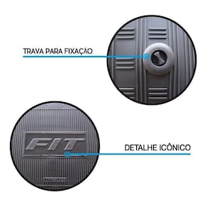 Especificação Técnica: Fabricado de Borracha injetado Flexível Espessura de 3mm a 4mm e bordas de ate 5mm Textura Antiderrapante Bordas Retentoras de Sujeira e mais grossa Material Super Resistente , não rasga e de grande durabilidade. Personalizado com o nome do carro Baixo odor Cor Preta Jogo de 3 peças, sendo 2 peças Dianteira e 1 uma única peça traseira com túnel Acompanha furação para travar os tapete dianteiro Esquerdo motorista
