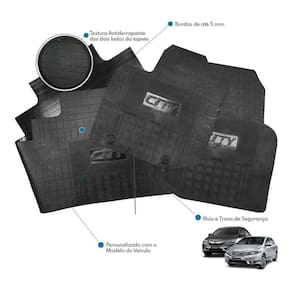 Especificação Técnica: Fabricado de Borracha e PVC Injetado Flexível Espessura de 3 a 4mm e bordas de ate 5mm Textura Antiderrapante Bordas Retentoras de Sujeira e mais grossa Material Super Resistente , não rasga e de grande durabilidade. Personalizado com o nome do carro Baixo odor Cor Preta Jogo de 3 peças, sendo 2 peças Dianteira e 1 uma única peça traseira com túnel