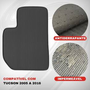 Benefícios do Produto - Compatível com Hyundai Tucson 2005 a 2016 - Encaixe sob medida, sem adaptações - Descanso de pé incluso, removível - PVC borracha resistente, flexível e sem cheiro forte - Base pinada antiderrapante - Lavável com água e sabão - Visual limpo, sem bordado ou acabamento frágil