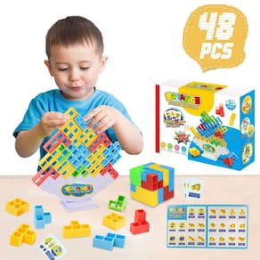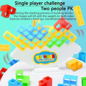 - [Dois modos de jogo] Modo de desafio para um jogador: as crianças empilham torres Tetra individualmente para exercitar a paciência, o equilíbrio e desenvolver o espírito de não desistir facilmente. 2. Modo de jogo divertido para dois jogadores: pegue 22 cartas; devolva; quebre a ordem das cartas; compre uma carta aleatória; siga as instruções da carta até a próxima etapa. Quem colocar os blocos no chão primeiro perde.
