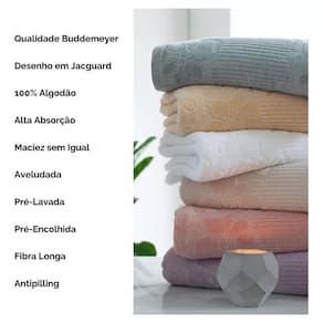 A coleção Lollipop da Buddemeyer com design elegante tem o corpo com bolinhas e a barra floral. Toalhas 100% algodão de fibra longa. Toalhas pré-lavadas e pré-encolhidas. Acabamento especial Buddemeyer que proporciona alta capacidade de absorção, oferecendo maciez, toque delicado, volume acentuado, além de brilho natural que realça as cores. A Buddemeyer é referência em qualidade e estilo.