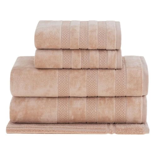 Jogo Toalha de Banho Adam 5 Peças Buddemeyer Cor: Ocre 1909 Jogo Toalha de Banho Adam 5 Peças Buddemeyer Em delicado e aconchegante veludo em puro algodão, a Toalha Adam possui inigualável suavidade. Muito sofisticada com um moderno design em jacquard. A barra é composta por linhas, que agrega elegância e refinamento ao modelo. Seu toque delicado torna o modelo diferenciado, promovendo experiências sensoriais de inigualável conforto, possui excelente capacidade de absorção e brilho, que realça sua beleza natural. A Buddemeyer é referência em qualidade e estilo. contém: 1 Toalha de Banho Tamanho 1,40m x 80cm1 Toalha de Rosto Tamanho 48cm x 85cm1 Toalha para os pés Tamanho 48cm x 70cm Gramatura: 450 g/mComposição: 100% AlgodãoMarca: Buddemeyer Marca: Não Informado