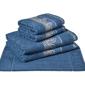 Jogo Toalha de Banho Gigante 5 Peças Barroca Cavhome Cor: Azul Egipcio Jogo Toalha de Banho Gigante 5 peças Barroca Cavhome As toalhas são produzidas com o mais puro algodão brasileiro com o objetivo de proporcionar a melhor absorção e toque. toalha de banho Barroca tem um efeito decorativo na barra em jacquard composto de poliéster brilhante. contém:2 toalhas de banho. Tamanho: 75cm x 1,50m2 toalhas de rosto. Tamanho: 50cm x 80cm1 piso. Tamanho: 50cm x 75cm Composição: 100% algodãoGramatura: 450 g/mMarca: Cavhome Marca: Não Informado