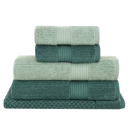 Conteúdo da embalagem: 2 toalhas de banho (90 x 150 cm); 2 toalhas de rosto (48 x 85 cm); 1 toalha de piso (48 x 80 cm)