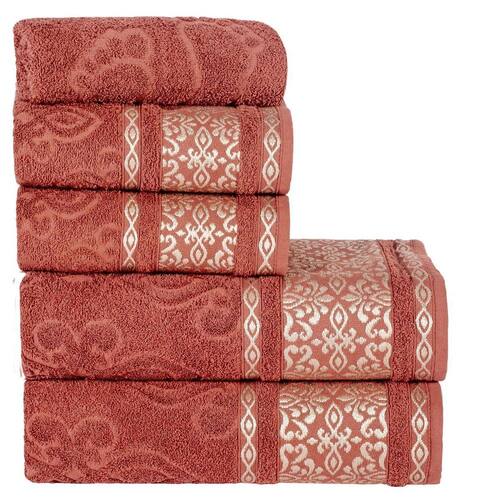 Jogo Toalhas De Banho e Rosto Paris com 5 Pçs Super Luxo Gigante Grossa Cor: TERRACOTA Jogo de Toalhas de Banho e Rosto Paris - 5 Peças Super Luxo, Gigante e Grossa
