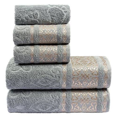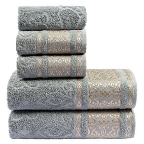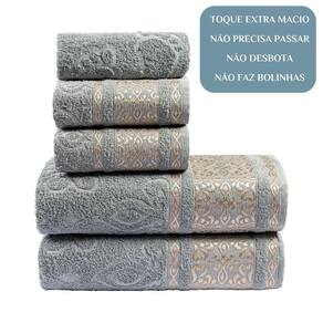 Jogo Toalhas De Banho e Rosto Paris com 5 Pçs Super Luxo Gigante Grossa Cor: CINZA Jogo de Toalhas de Banho e Rosto Paris - 5 Peças Super Luxo, Gigante e Grossa