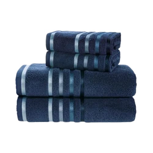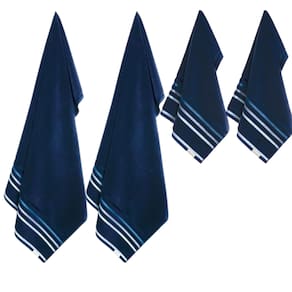 O que vem na embalagem: 02 Toalha de Rosto, tamanho 48cm x 80cm Cor: Azul Naval 02 Toalha de Banhão, tamanho 150cm x 86cm Cor: Azul Naval Gramatura 500g/m²