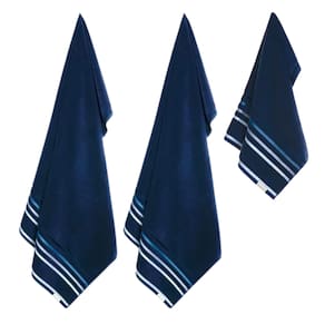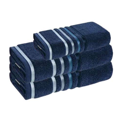 O que vem na embalagem: 01 Toalha de Rosto, tamanho 48cm x 80cm Cor: Azul Naval 02 Toalha de Banho, tamanho 140cm x 70cm Cor: Azul Naval Gramatura 500g/m²