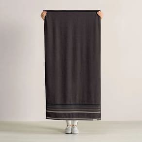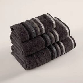 O que vem na embalagem: 01 Toalha de Rosto, tamanho 48cm x 80cm Cor: Cinza Carbono 02 Toalha de Banho, tamanho 140cm x 70cm Cor: Cinza Carbono Gramatura 500g/m²