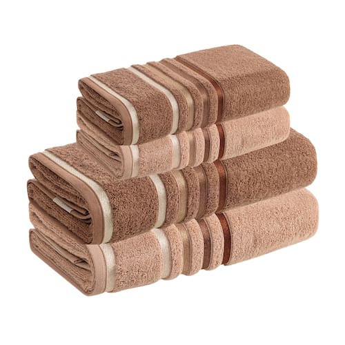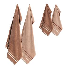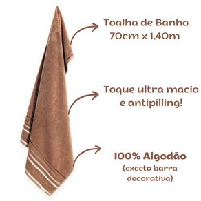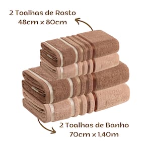 01 Toalha de Rosto, tamanho 48cm x 80cm Cor: Rosa 01 Toalha de Rosto, tamanho 48cm x 80cm Cor: Marrom 01 Toalha de Banho, tamanho 140cm x 70cm Cor: Rosa 01 Toalha de Banho, tamanho 140cm x 70cm Cor: Marrom
