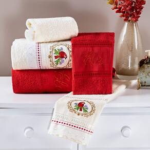 Jogo Toalhas De Banho E Rosto Aurora com 5 Pçs Super Grossa COR: VERMELHO Jogo de Toalhas de Banho e Rosto Aurora com 5 Peças - Super Grossa e Macia