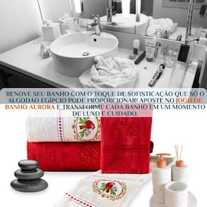 Experimente a sensação de luxo diário com o Jogo de Toalhas Aurora. Conforto, qualidade e beleza no seu banheiro. Não perca a chance de transformar seu banho em um momento especial Marca: Jm Enxovais