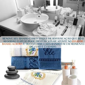Experimente a sensação de luxo diário com o Jogo de Toalhas Aurora. Conforto, qualidade e beleza no seu banheiro. Não perca a chance de transformar seu banho em um momento especial Marca: Jm Enxovais