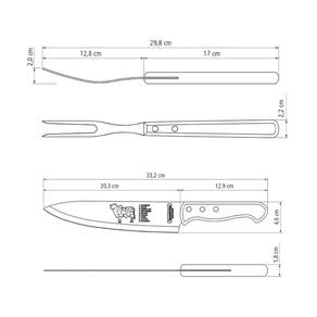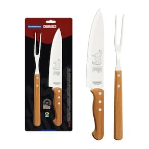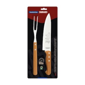 Jogo Trinchante Churrasco Tramontina Aço Inox e Cabos De Madeira Natural 2 Peças