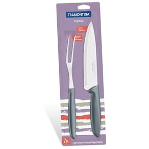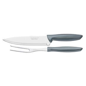 O Jogo Trinchante Tramontina Plenus com Lâmina em Aço Inox e Cabo de Polipropileno Cinza 2 Peças da Linha Plenus é perfeito para os mais diferentes usos na cozinha. Atende do preparo dos alimentos ao serviço de mesa. São duas peças que estarão presentes desde a preparação até o momento de servir seus amigos a mesa. Produzidos com materiais de qualidade, os cabos em polipropileno na cor cinza e a lâminas em aço inox são confortáveis e fáceis de manusear. Podem ser levados à máquina de lavar louças.