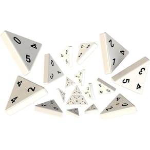 Conteúdo da Embalagem: 4 Suportes para peças, 56 peças de Triominos, 1 regra e adesivos