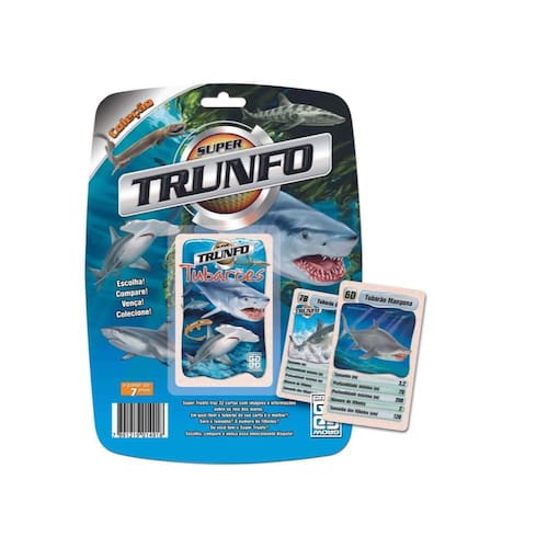 Jogo Trunfo Grow Tubarões Super Trunfo Tubarões traz 32 cartas com ilustrações e informações sobre os reis dos mares. Em qual item o tubarão da sua carta é o melhor Será em tamanho Em número de filhotes Ou você tem o Super Trunfo Escolha, compare e vença essa emocionante disputa Número de jogadores: 2 a 8 Idade: - 8 a 11 anos Idade recomendada A partir de 7 anos Conteúdo da embalagem - Jogo Trunfo Grow Tubarões 01491 Observações Foto meramente ilustrativa Garantia 3 meses contra defeito de fabricação Inmetro 003817/2019 CE/BRI/ICEPEX - N 01264-25 OCP 0046 Ean: 7908010114911