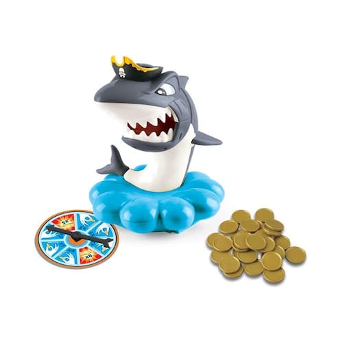 Contém: 1 Tubarão Pirata, 36 moedas de plástico e 1 roleta.